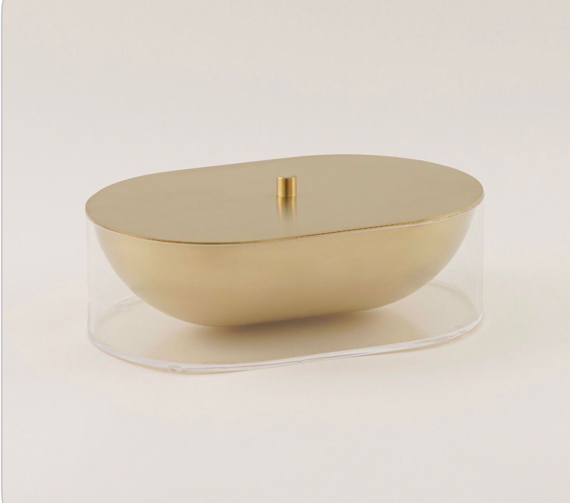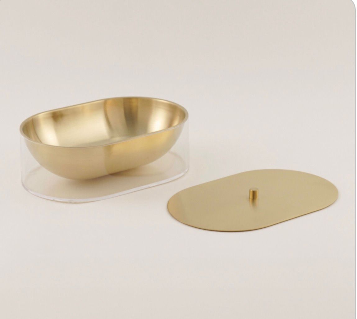 A refined serving bowl crafted from premium stainless steel and paired with a clear acrylic base. Designed with a sleek lid and modern silhouette, it adds a refined, luxurious touch to any table or display setting.