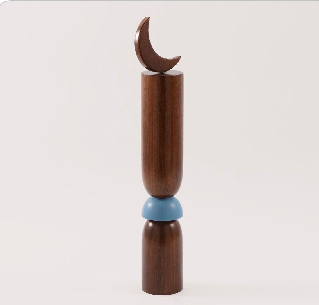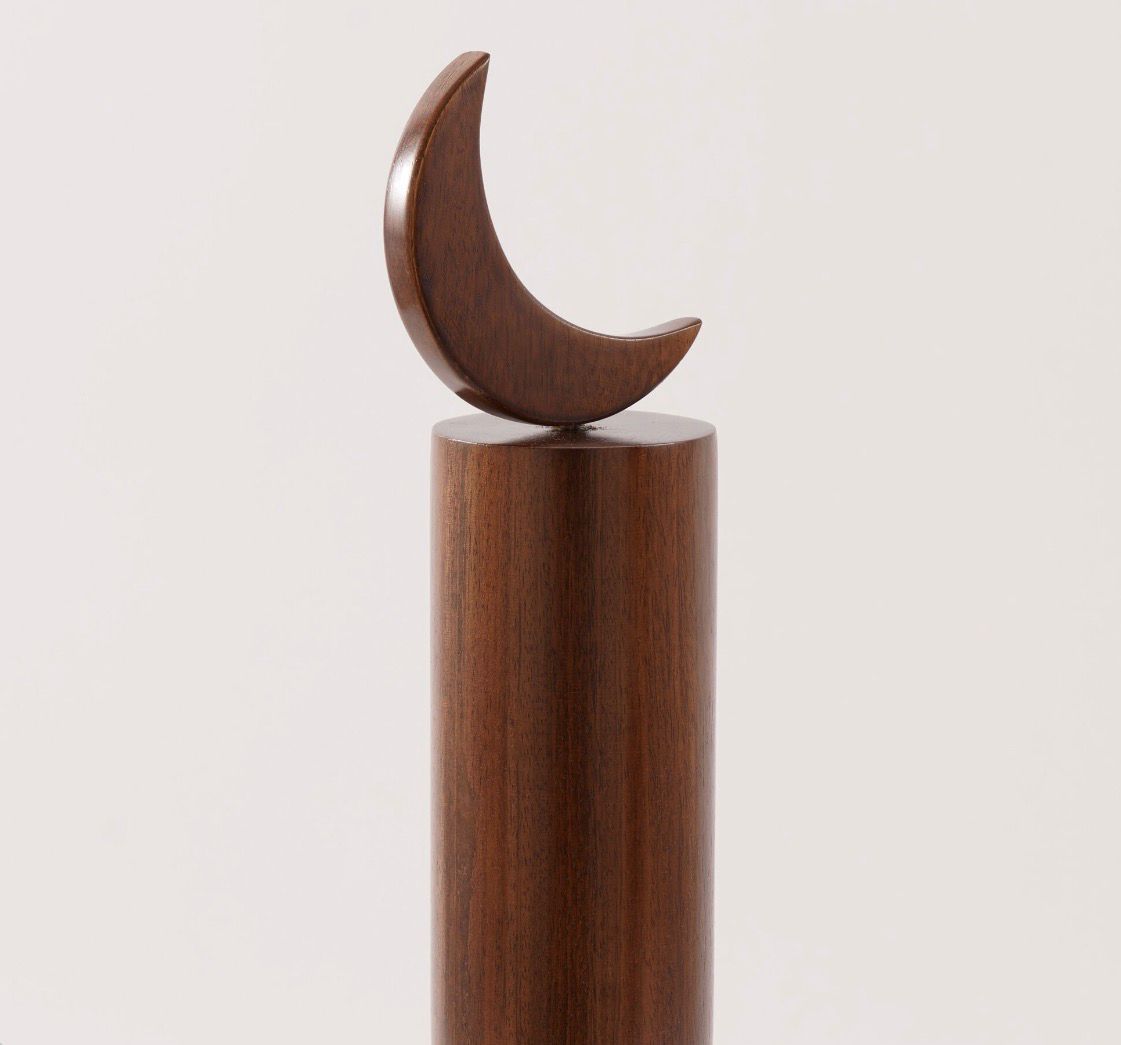 A minimalist decorative minaret made entirely from natural wood with a smooth wooden crescent top. Elegant and warm, perfect for Ramadan and modern home décor.