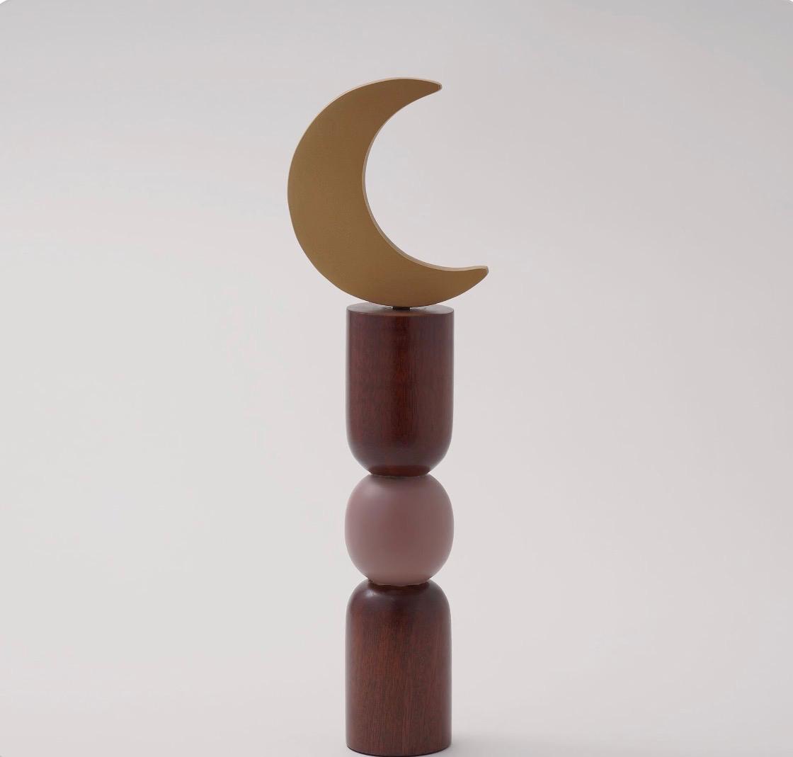 A minimalist decorative minaret made from natural wood, topped with a matte gold crescent. Elegant and warm, perfect for Ramadan and modern home décor.