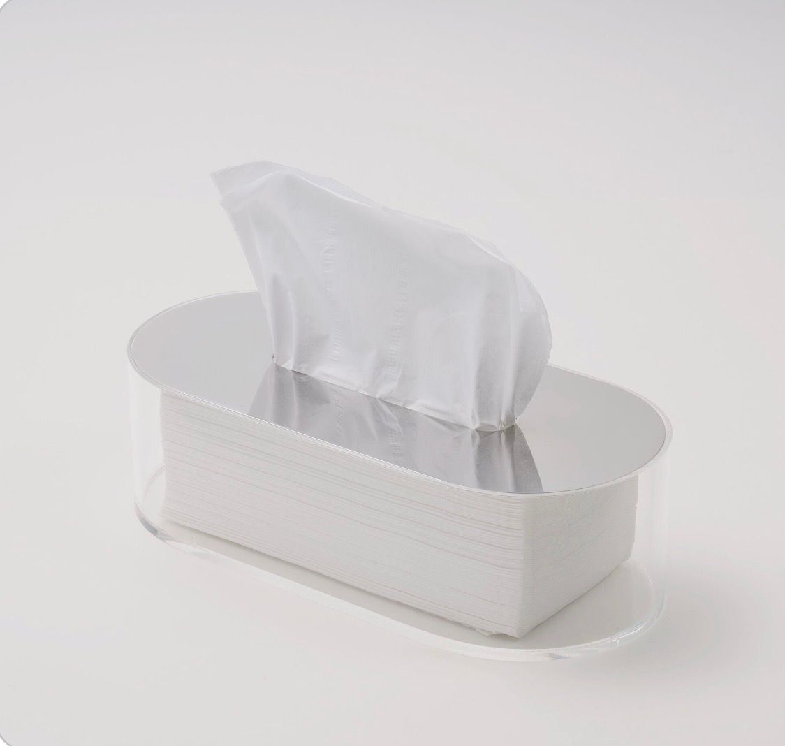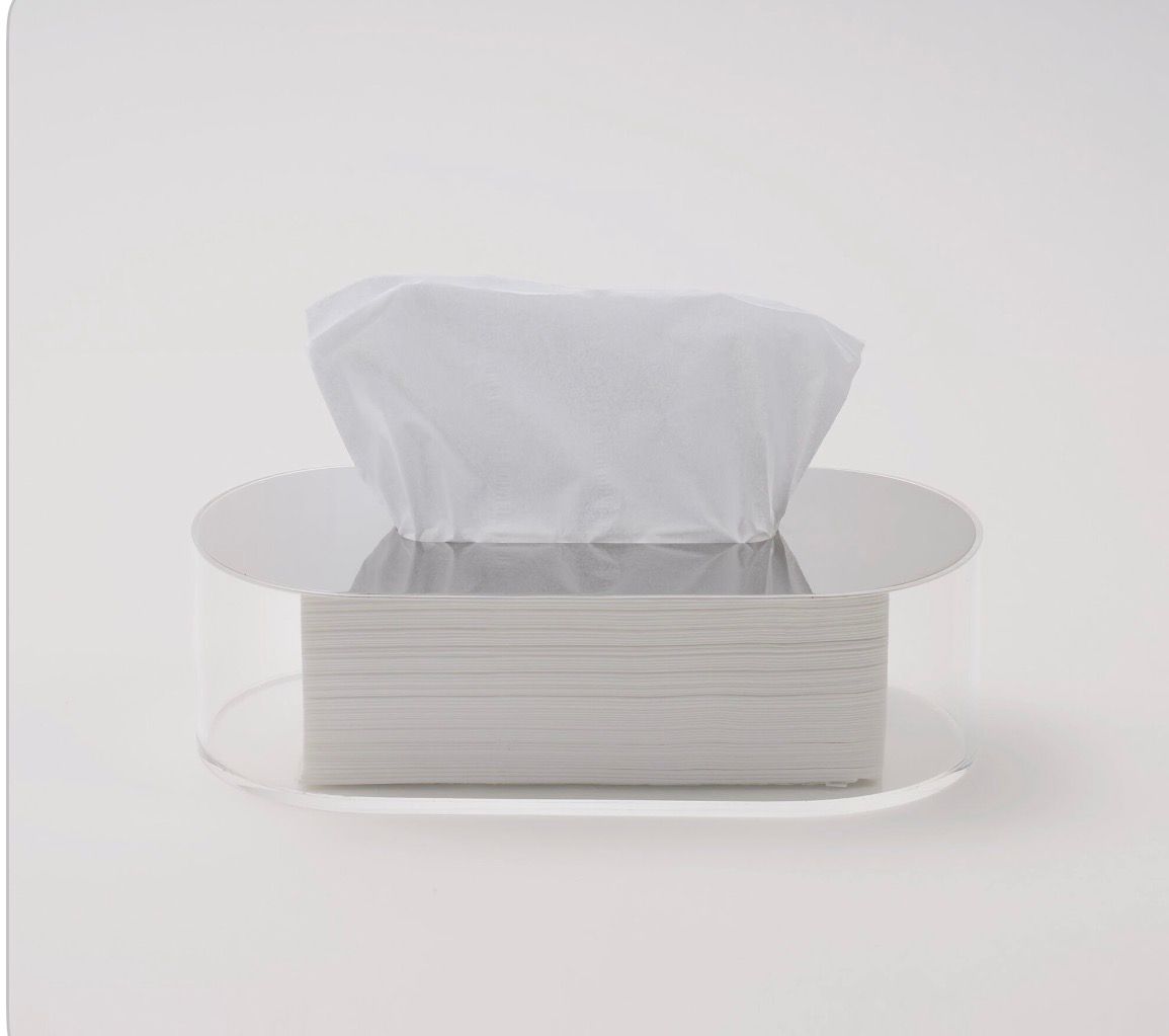 A sleek clear acrylic tissue holder designed to keep tissue boxes neatly displayed with a modern, minimal look. Perfect for coffee tables, guest areas, and luxury hosting setups.